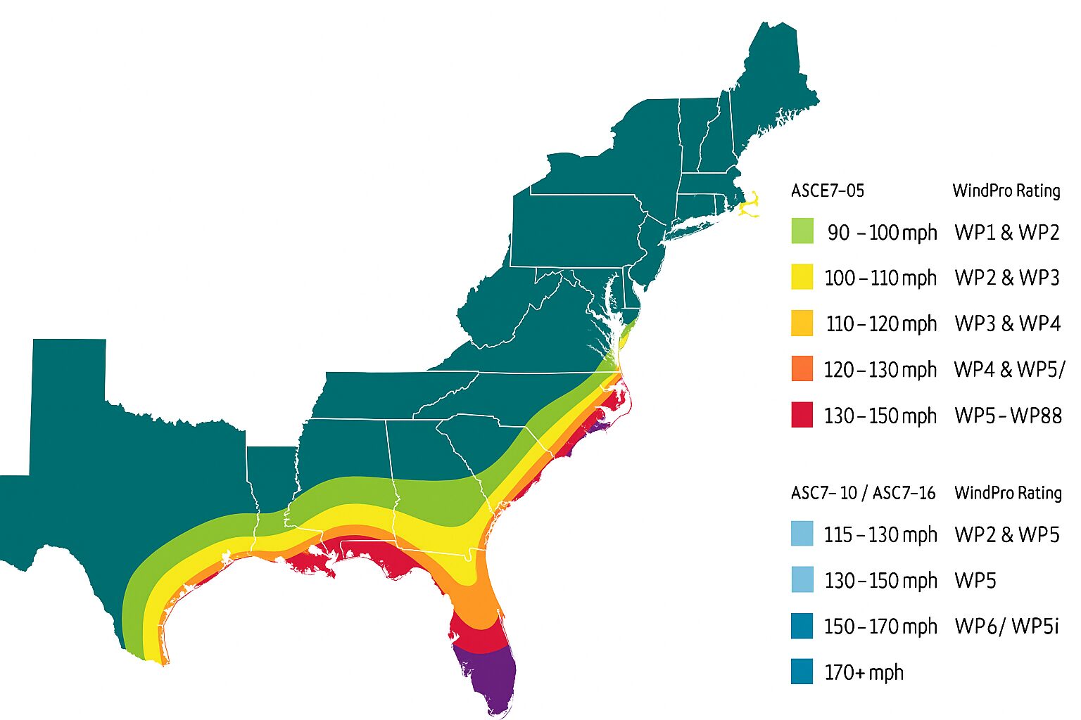 ASCE 7-05 Wind Speeds (mph) | ASCE 7-05 Wind Speeds (mph) | |||||||||||||